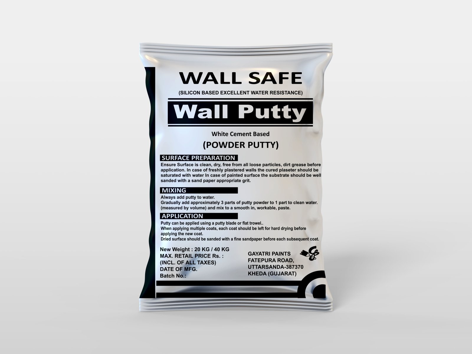 Wallsafe Powder Putty Is A White Cement Based Product With Redispersible Polymer And Functional Additives For Application On Interior Rough Plasters To Give A Smooth Finish.It Is Applied Before Painting Of The Wall. It Fine Pores Of The Walls And Ceilings, Thereby Providing A White, Smooth And Dry Surface For Painting. It Does Not Require Water Curing And It Can Even Be Applied On Freshly Plastered Wall Resulting In Savings Of Time And Cost.